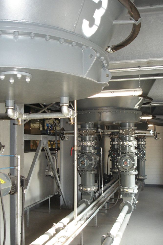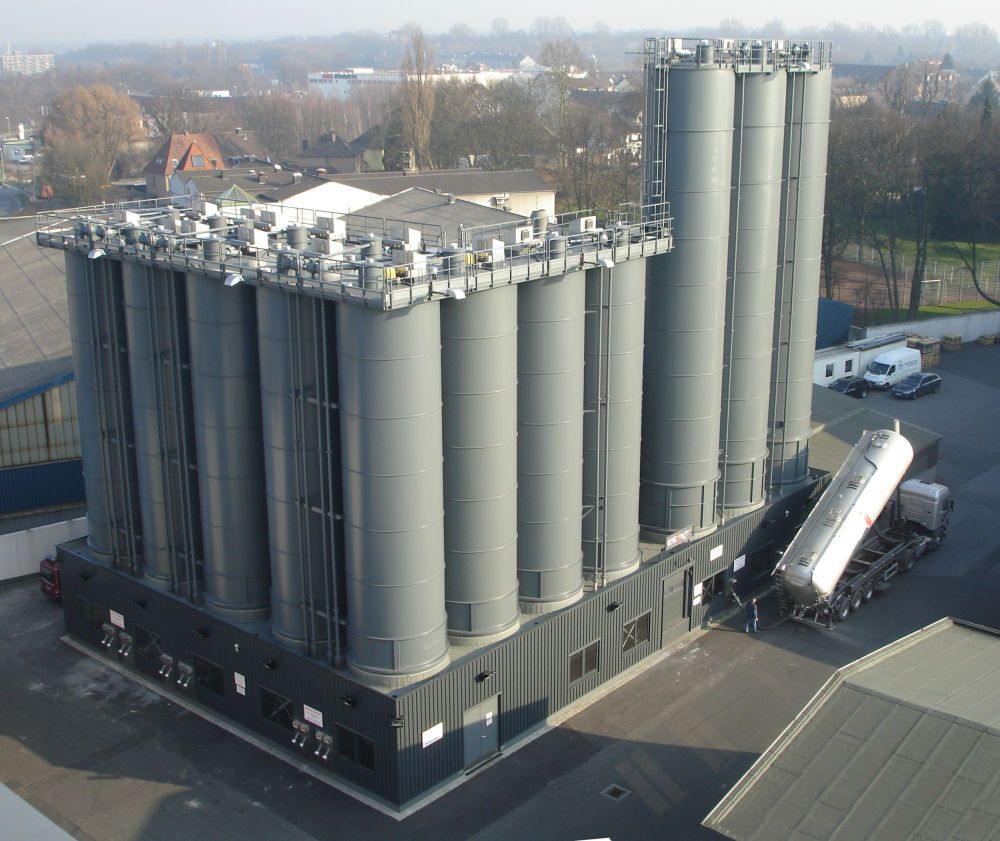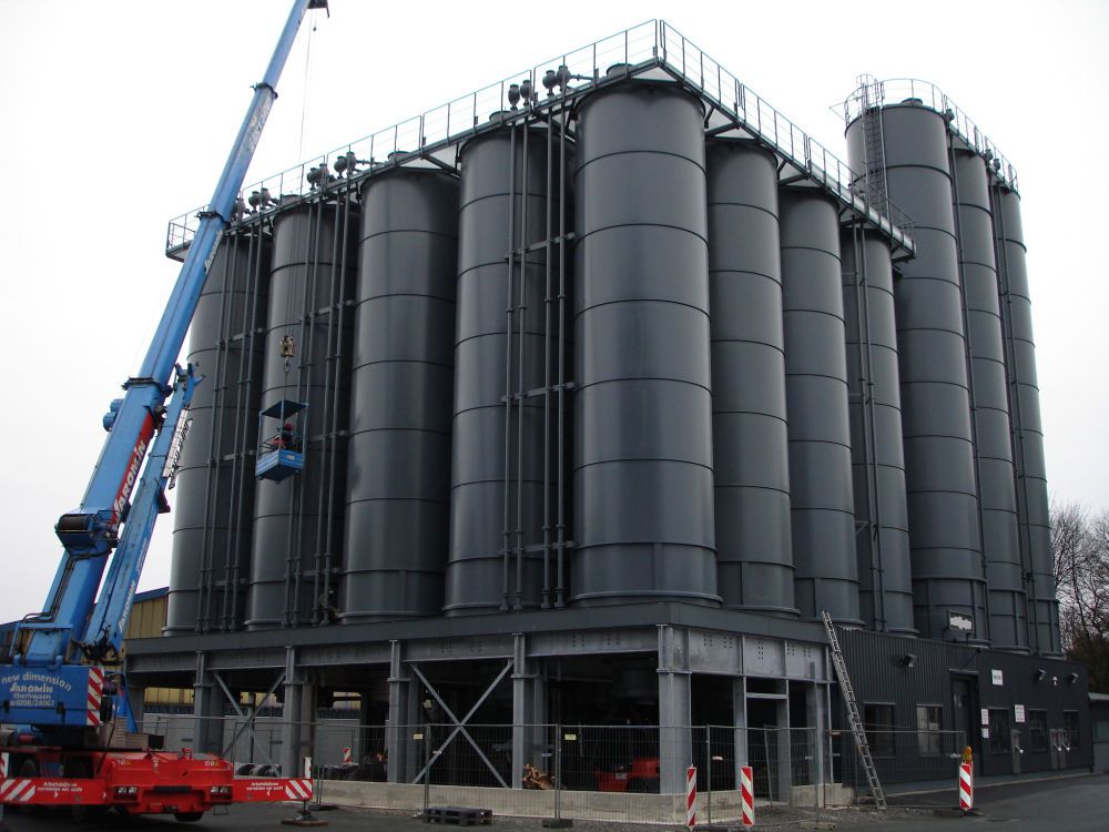 18 Silozellen inkl. Dosier- und Fördertechnik zur Lagerung diverser Schüttgüter.